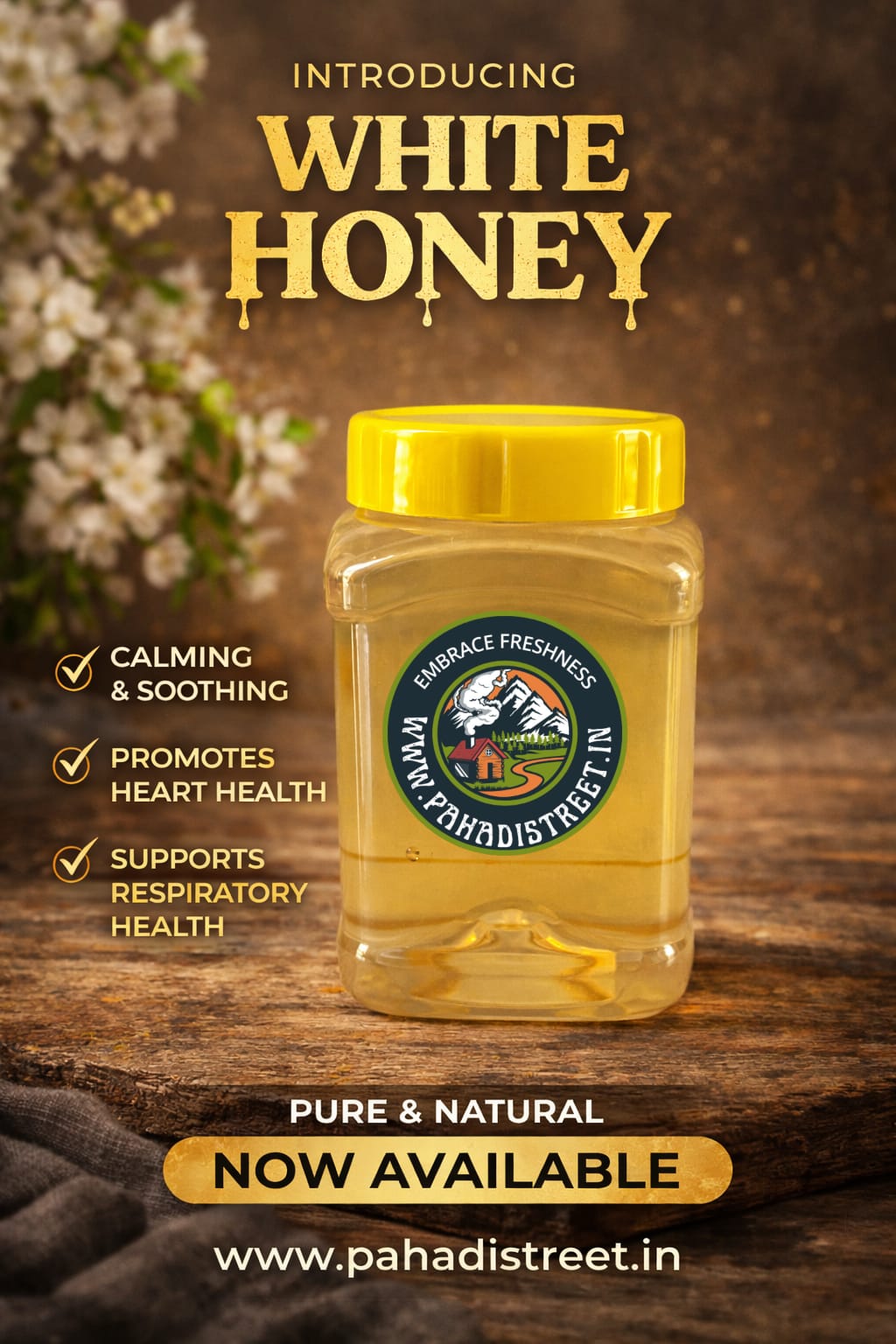 At PahadiStreet.in, honey is more than just sweetness—it is a reflection of untouched nature, careful harvesting, and timeless purity. Sourced from pristine Himalayan regions, our honey is 100% pure, fresh, and free from any added sugar or artificial additives. Every drop captures the essence of wild flora, crafted by bees in environments far removed from pollution and processing.